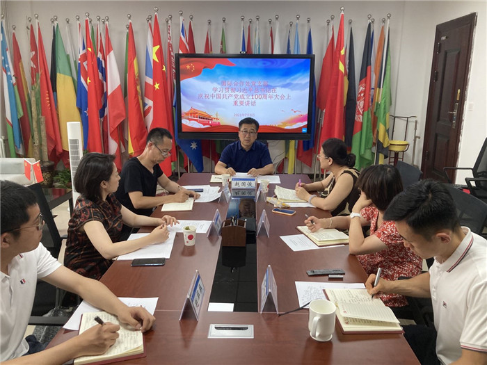 7月6日,国际合作党支部召开会议,学习贯彻习近平总书记在庆祝中国共产党成立100周年大会上的重要讲话精神。