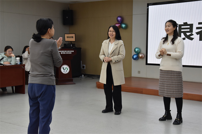随后进行的互动游戏环节更是将现场气氛推向了高潮。在“朋心合力”游戏中,师生们默契配合,学生表演老师猜,老师表演学生猜,共同完成一组组生动有趣的词语。“螃蟹扭一扭”通过集体表演将师生们的阵阵欢笑声传遍会场的每个角落。在场师生纷纷表示,在此次联谊活动深切体会到了团结协作的力量。