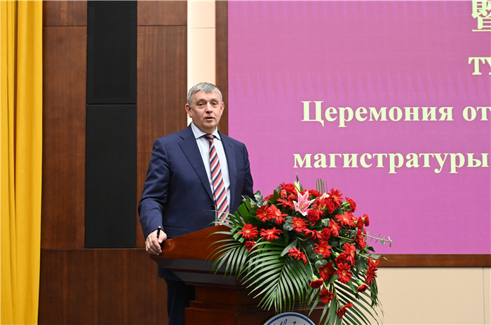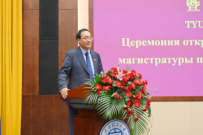在开学典礼暨揭牌签约仪式上,孙宏斌致欢迎辞。他表示,中俄两国之间互为最大邻国和全面战略协作伙伴关系,是相互尊重、和平共处、合作共赢的新型大国关系的典范。此次双方的合作办学项目使我校成为山西省首个与“一带一路”沿线国家开展中外合作办学项目并且拥有自主招生资格的高校,为山西省的教育事业和产业转型发展做出积极贡献。他指出,实现碳达峰、碳中和是中国的重大战略决策,这次合作将有助于培养出更多具备创新精神、国际视野和跨学科能力的能源电气领域重要人才,为推动山西省的高质量转型发展、服务国家的能源科技创新事业做出更大贡献。他祝愿中俄两国友谊之花常开、友谊之树长青,并期待双方通过这一项目的合作,共同开创中俄高等教育合作交流的新辉煌。